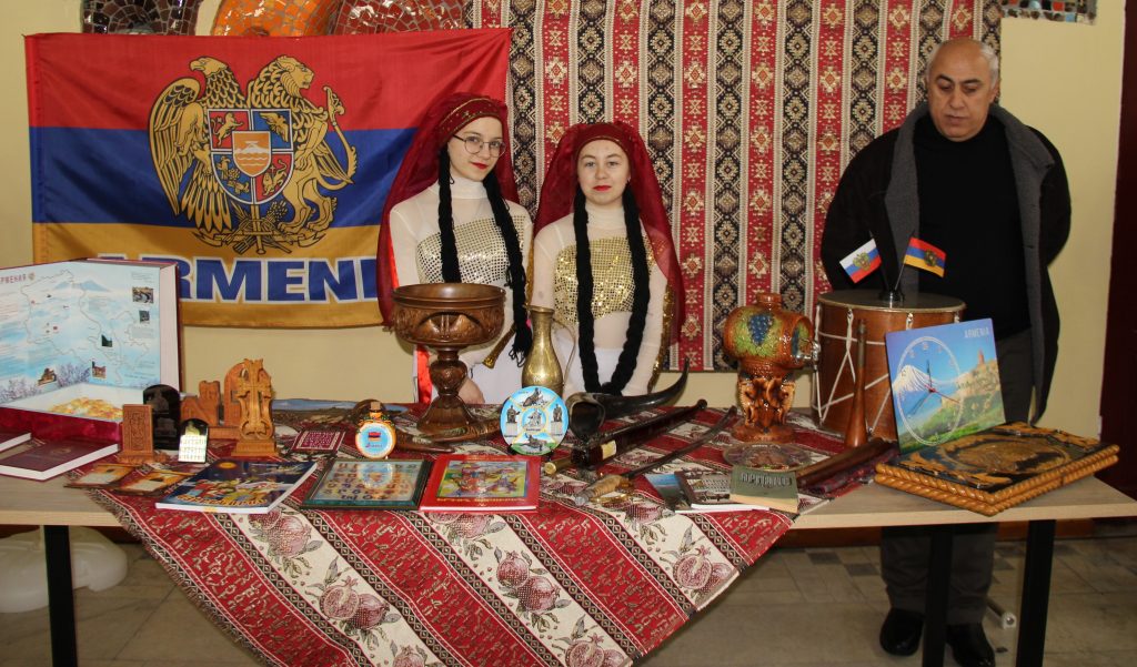 Перед началом мероприятия все желающие могли рассмотреть выставки национальных уголков, представленных в фойе.