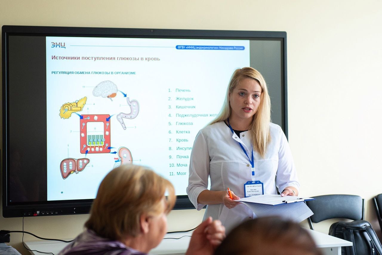 «Школа диабета» нацпроекта «Продолжительная и активная жизнь» показала себя как одна из эффективных форм обучения пациентов. Цель программы – дать знания о заболевании, научить предотвращать осложнения, которые могут сопровождать сахарный диабет. На занятиях подробно разбирают как вести дневник самоконтроля, рассчитывать дозу инсулина, получают информацию о правильном образе жизни, могут обменяться опытом и поддержать друг друга.