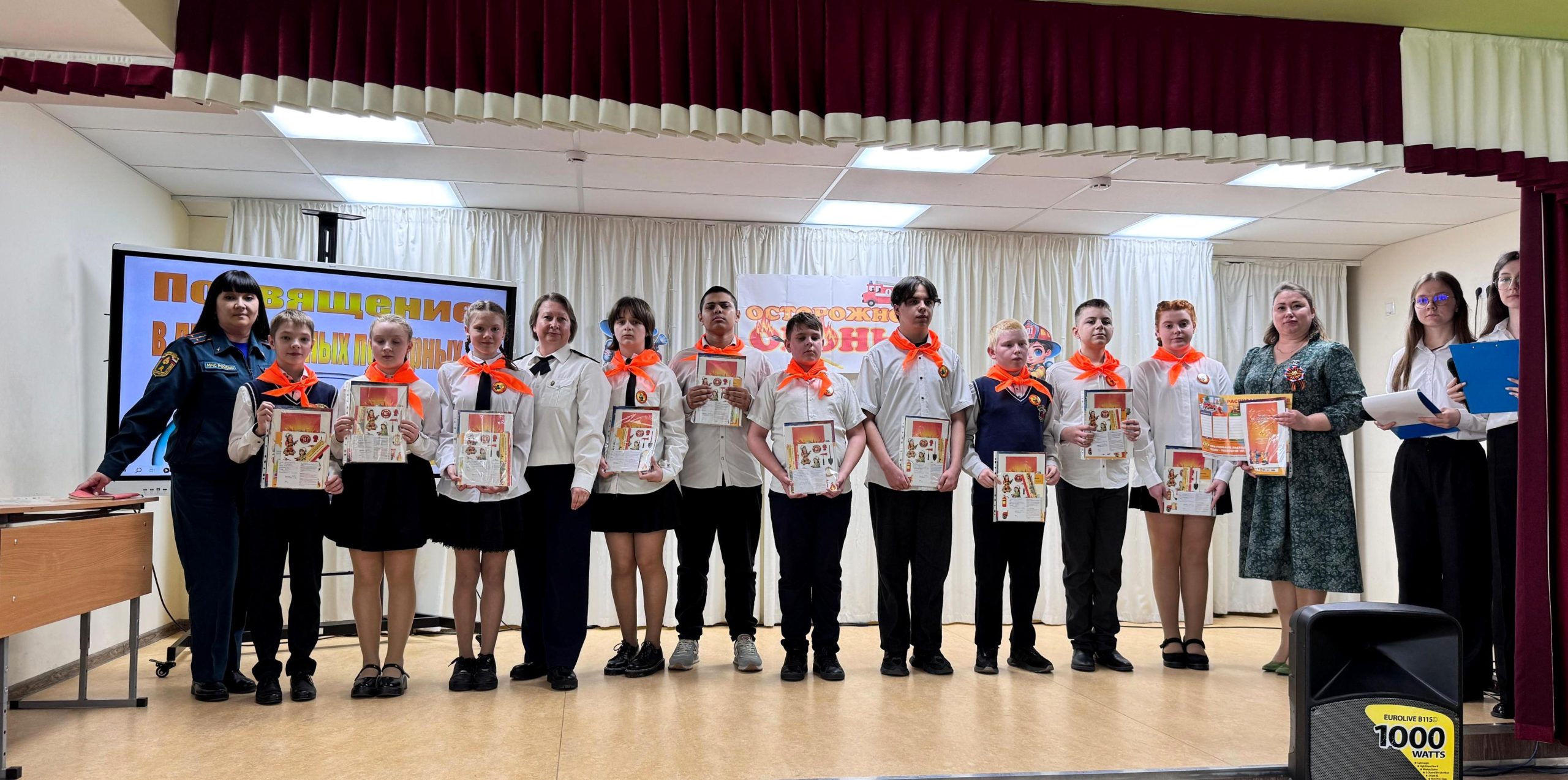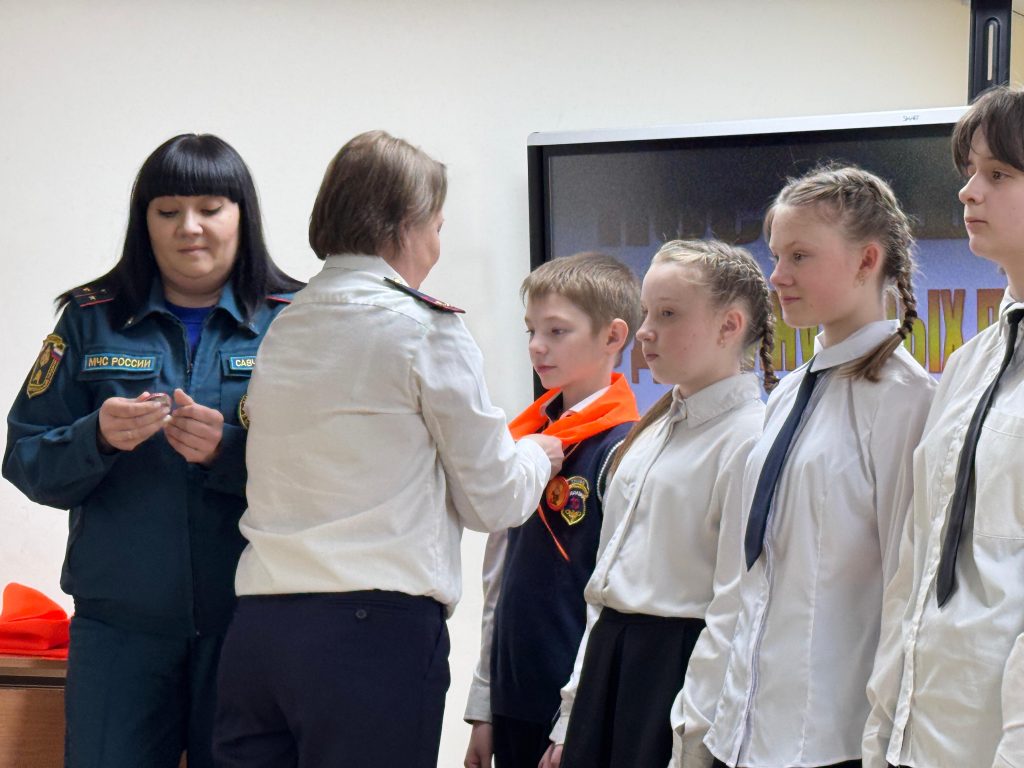 На празднике присутствовала председатель Всероссийского Добровольного пожарного общества города Гуково Ростовской области Анна Елисеева и дознаватель службы МЧС Инна Савченко. Наши почетные гости вручили детям именные удостоверения, значки и галстуки.