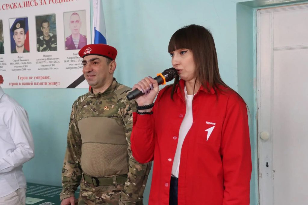 Советник директора по воспитанию и взаимодействию с общественными организациями Майя Петровна Панферова поздравила ребят с вступлением в ряды Юнармии и пожелала иметь всегда активную жизненную позицию.