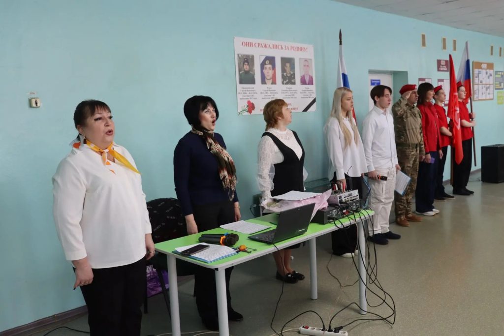 На линейке присутствовали гости: специалист местного отделения Движения Первых – Наталья Владимировна Маньшина и начальник юнармейского отряда города Гуково – Денис Владимирович Коваленко. Они обратились к ребятам с напутственными словами. После того как старшеклассники произнесли слова клятвы, Наталья Владимировна и Денис Владимирович торжественно вручили ребятам удостоверения юнармейцев.