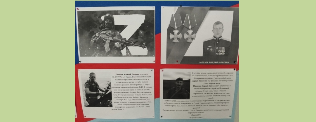 С помощью этой выставки мы отдаем дань памяти, уважения и признательности нашим героям, которые погибли, защищая Россию. В народной памяти эти герои навсегда останутся истинными патриотами, продемонстрировавшими на полях сражений пример огромной силы духа и взаимовыручки. Фотовыставка стала тем местом, где можно выразить свое уважение и благодарность бойцам.