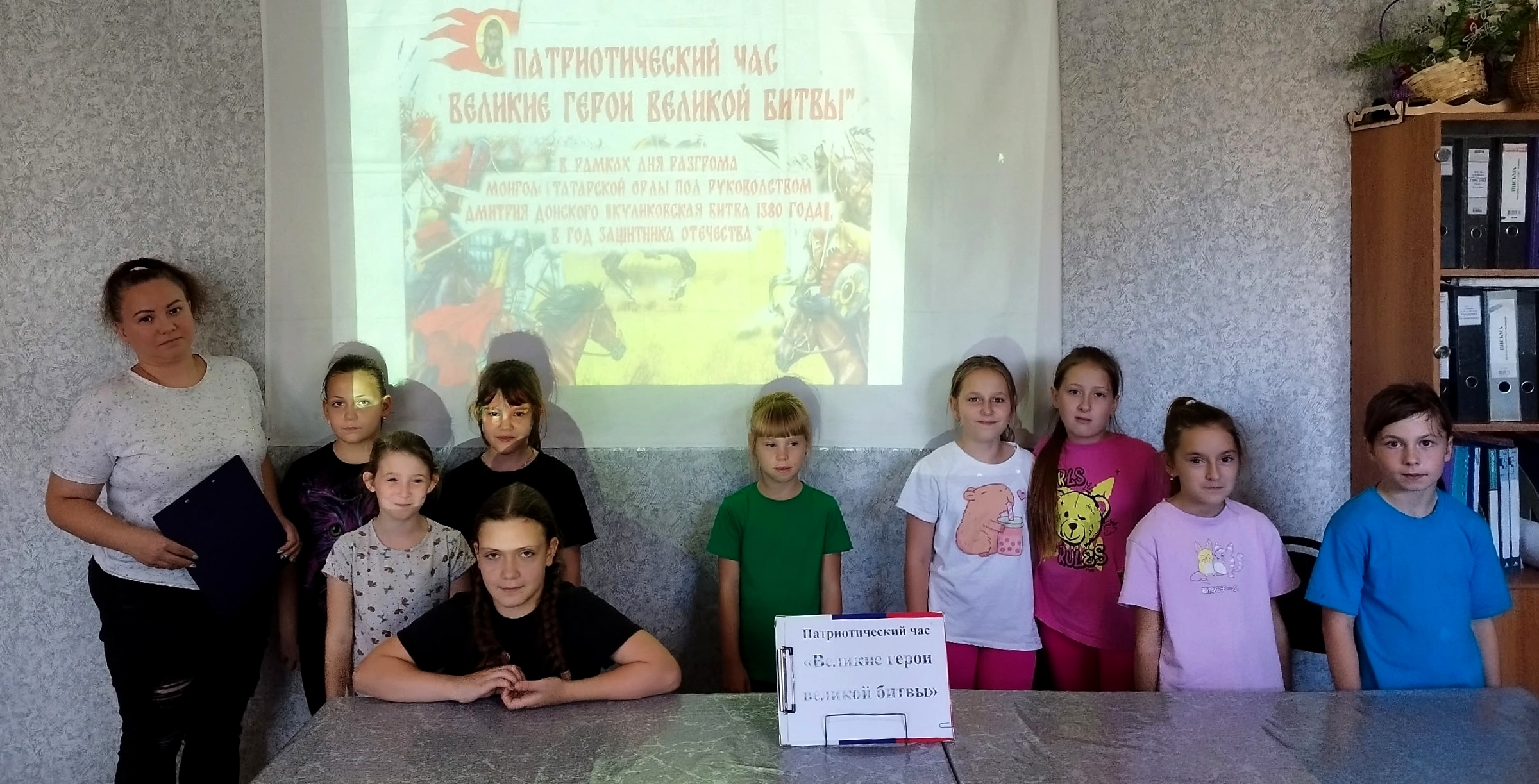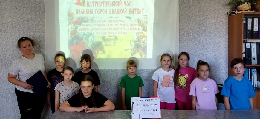В рамках Дня разгрома монголо-татарской орды под руководством Дмитрия Донского (Куликовская битва 1380 года), в Год защитника Отечества в клубе «Алмазный» состоялся патриотический час «Великие герои великой битвы».