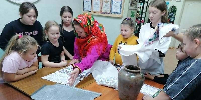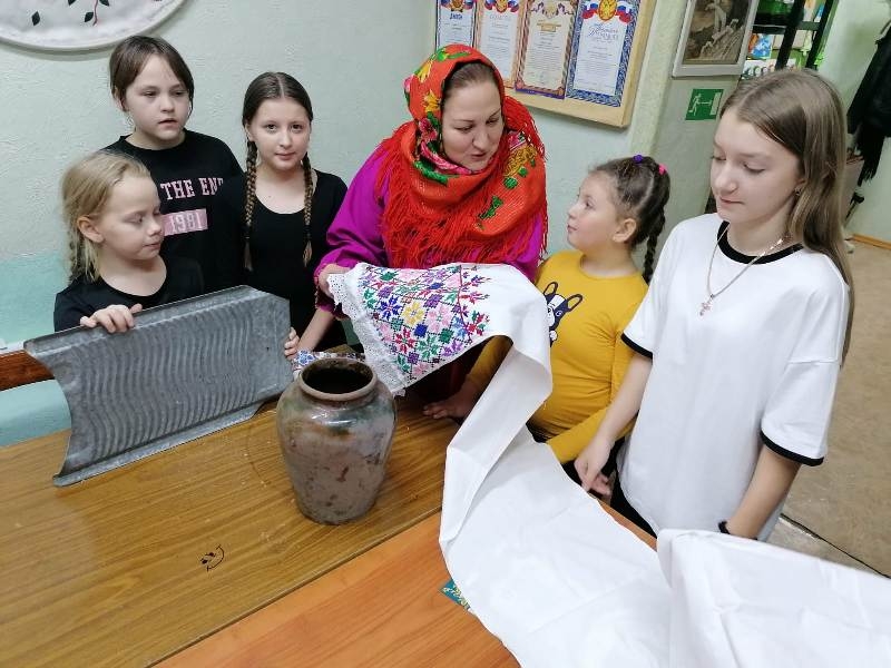 Познакомились с бытом казачьего куреня и изучая старинные предметы обихода, казачьего костюма и военной амуниции (прялка, рубель, валёк, шаровары, папаха, ткацкие пачёсы), пробовали угадать их назначение.