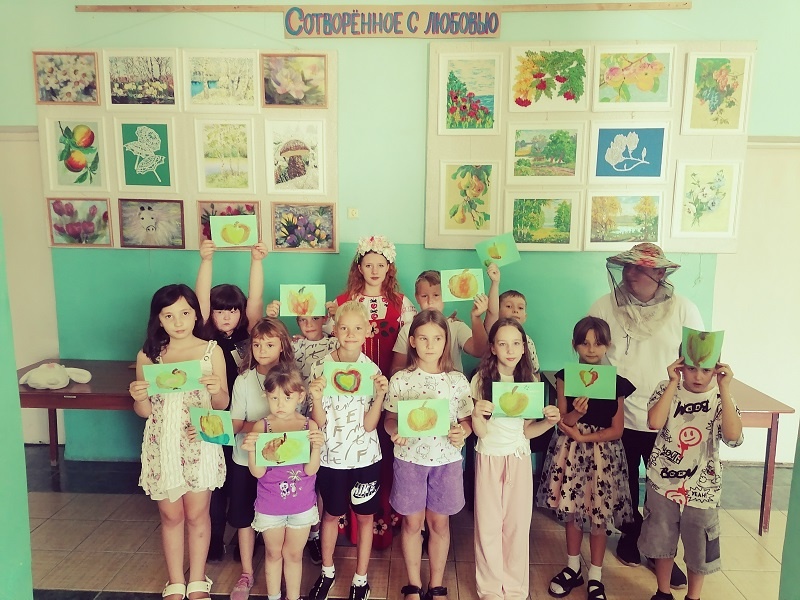 19 августа для ребят был проведён урок творчества «Великий Спас: яблоки припас». Участники с интересом слушали рекомендации ведущей о том, как правильно, красиво и необычно нарисовать яблоки. Ребята работали с увлечением, общались и делились своим опытом. Это привело к тому, что работы получились красивыми, разнообразными и непохожими друг на друга. В конце занятия все сделали фото на память.