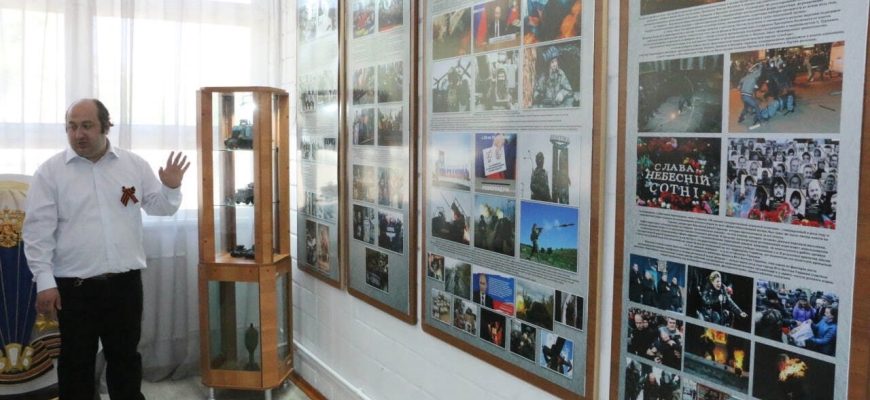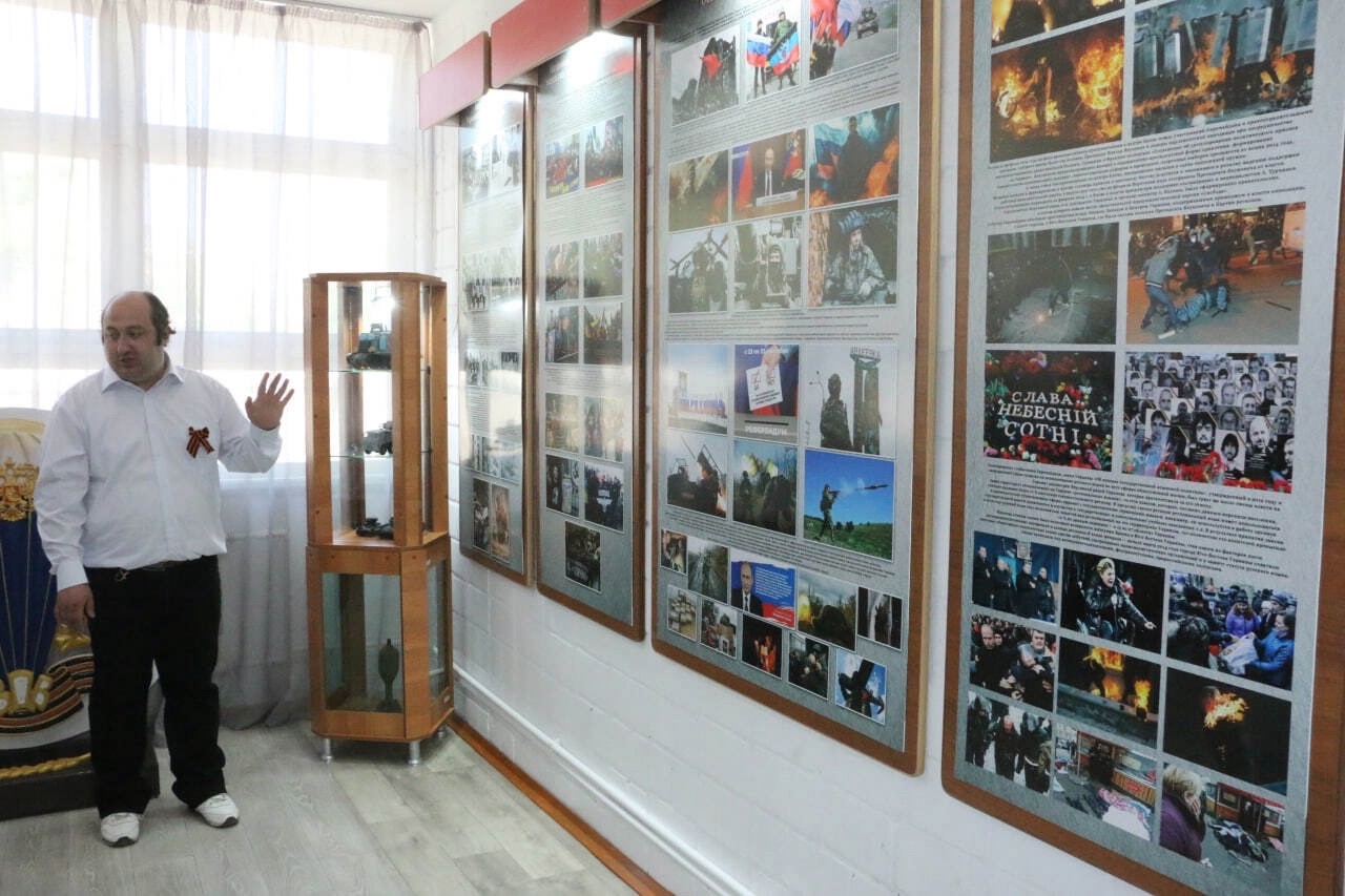 Перед началом программы советник директора по воспитанию и связям с детскими общественными объединениями Э.Ю. Енгоян организовал экскурсию в музей техникума. Здесь уже были экспозиции, посвященные Великой Отечественной войне, казачеству, спорту, а в этот день открыли новую, посвященную конфликту на Украине и СВО. Нашли здесь место и для Стены Памяти.