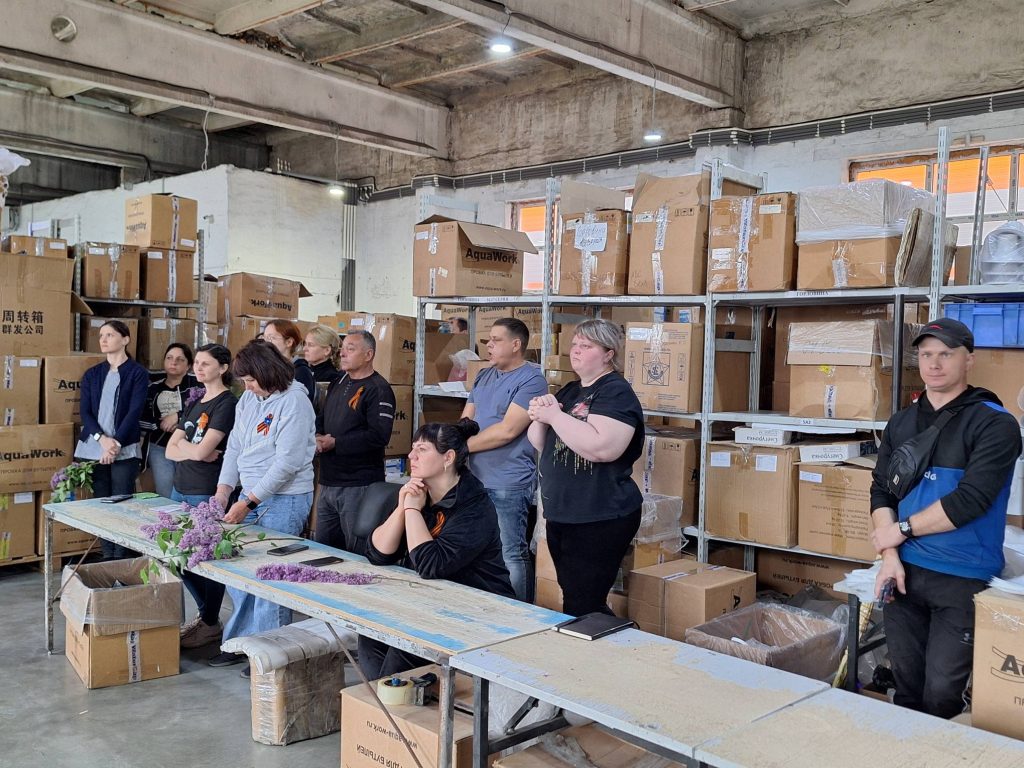 С приветственным словом к сотрудникам предприятия, Волонтерам Победы, Юнармейцам обратились депутат Законодательного собрания Ростовской области, председатель комитета Законодательного Собрания Ростовской области по социальной политике, труду, здравоохранению и делам военнослужащих – Елена Владимировна Елисеева, заместитель главы Администрации города Гуково – Дмитрий Александрович Климов и оператор линии сборки ООО «Аквамаркет+» — Любовь Николаевна Шаталова.