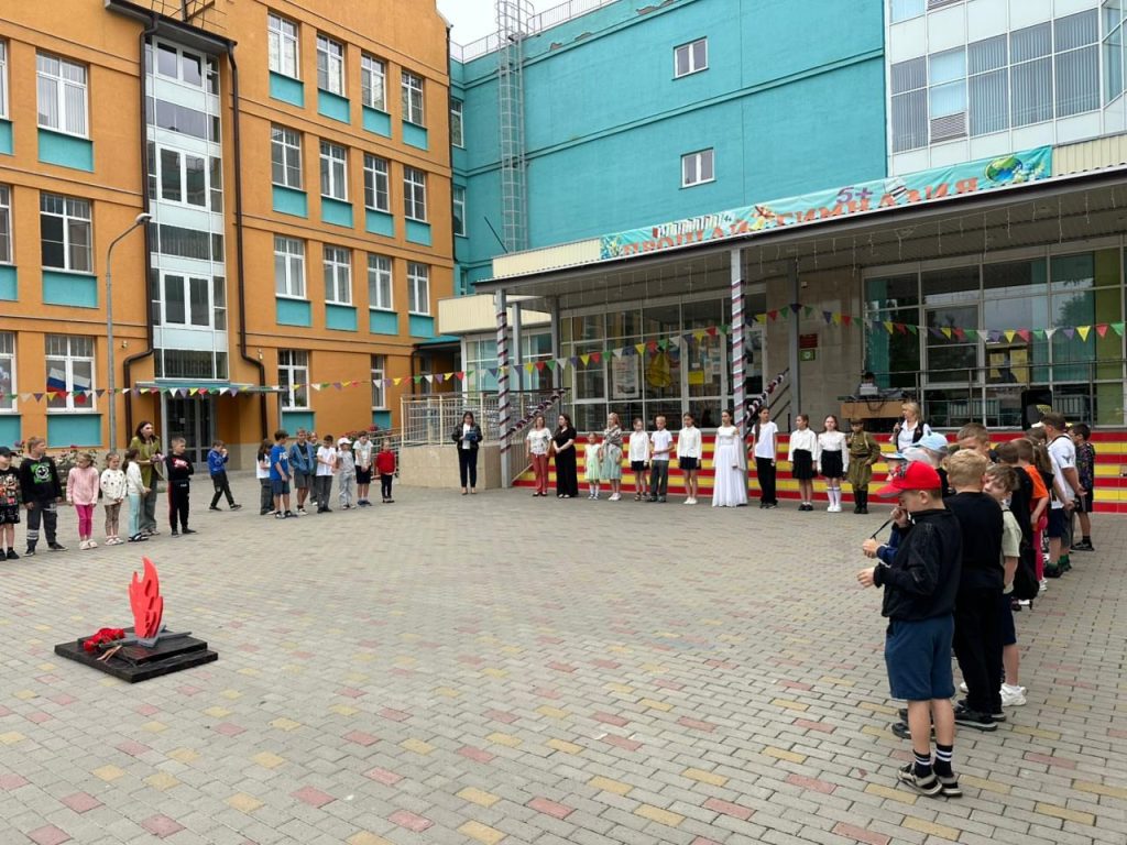 20 июня в пришкольном лагере Гимназии №10 прошла памятная линейка, посвященная Дню памяти и скорби.