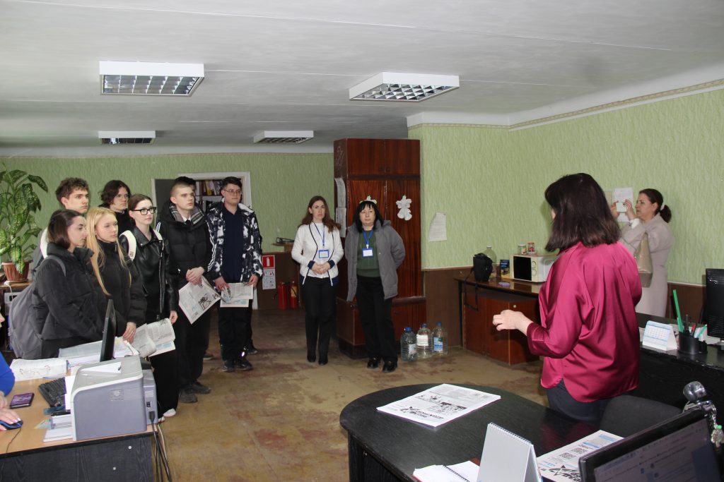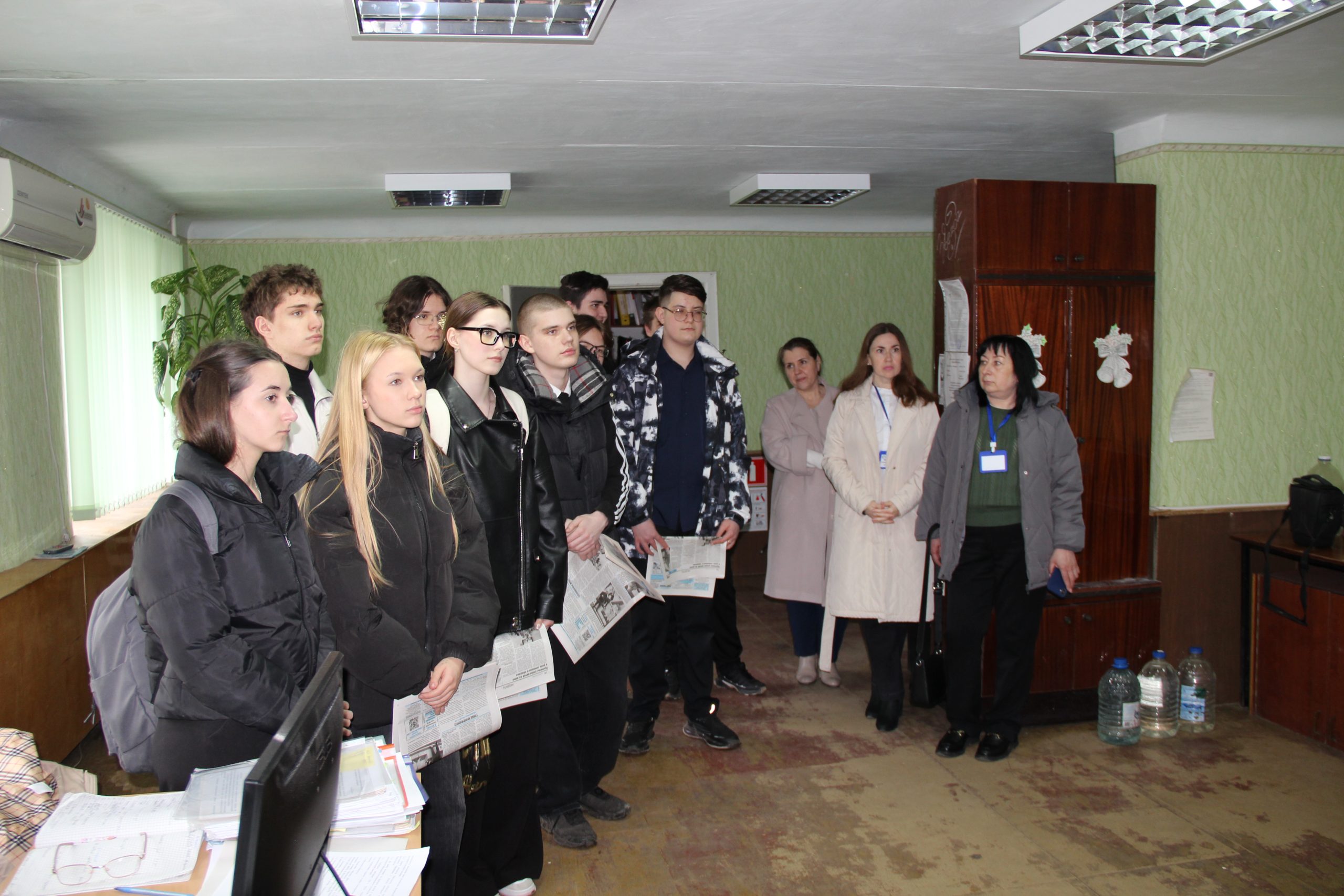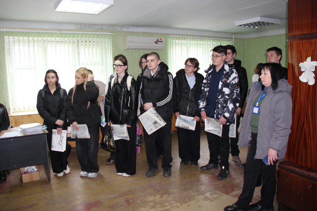 Сегодня в нашей редакции встречали гостей — сотрудники Центра занятости населения города Гуково Галина Викторовна Тазова и Екатерина Викторовна Мельниченко организовали для учеников 10-го класса школы №15 в сопровождении преподавателя английского языка Натальи Юрьевны Логиновой профориентационную экскурсию для знакомства с работой журналистского коллектива.