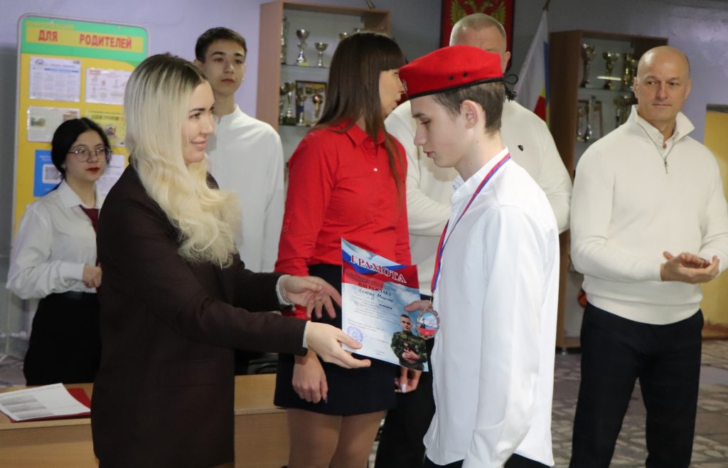 Примечательно, что именно в этот день были вручены награды фестиваля комплекса ГТО среди юнармейских отрядов, посвященного памяти участника СВО нашего земляка, гуковчанина Сергея Склярука. Медалями за третье место наградила ребят мама Сергея — Татьяна Семикова.