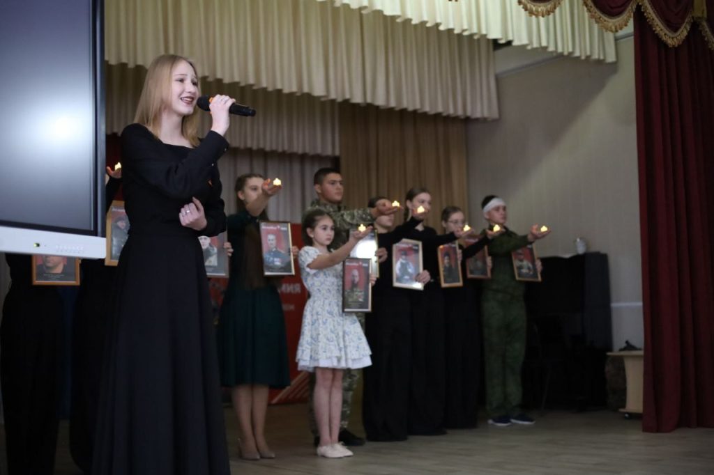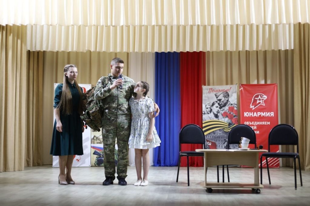 Также на школьной сцене была показана сценка о простой жизни обычной семьи: начало спецоперации, папа уходит защищать свою страну, его ждут родные, он ранен и возвращается домой к своим близким. Трогательная история, показанная учениками, не оставила равнодушным ни одного зрителя в зале.