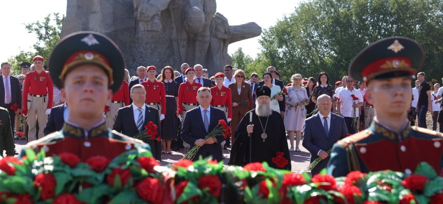 Сегодня глава региона Юрий Слюсарь принял участие в мероприятии, посвященном памяти жертв фашизма. Церемония возложения гирлянды Славы и цветов к мемориальному комплексу прошла на мемориале в Змиевской балке.