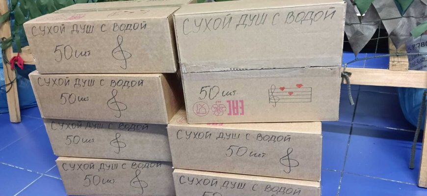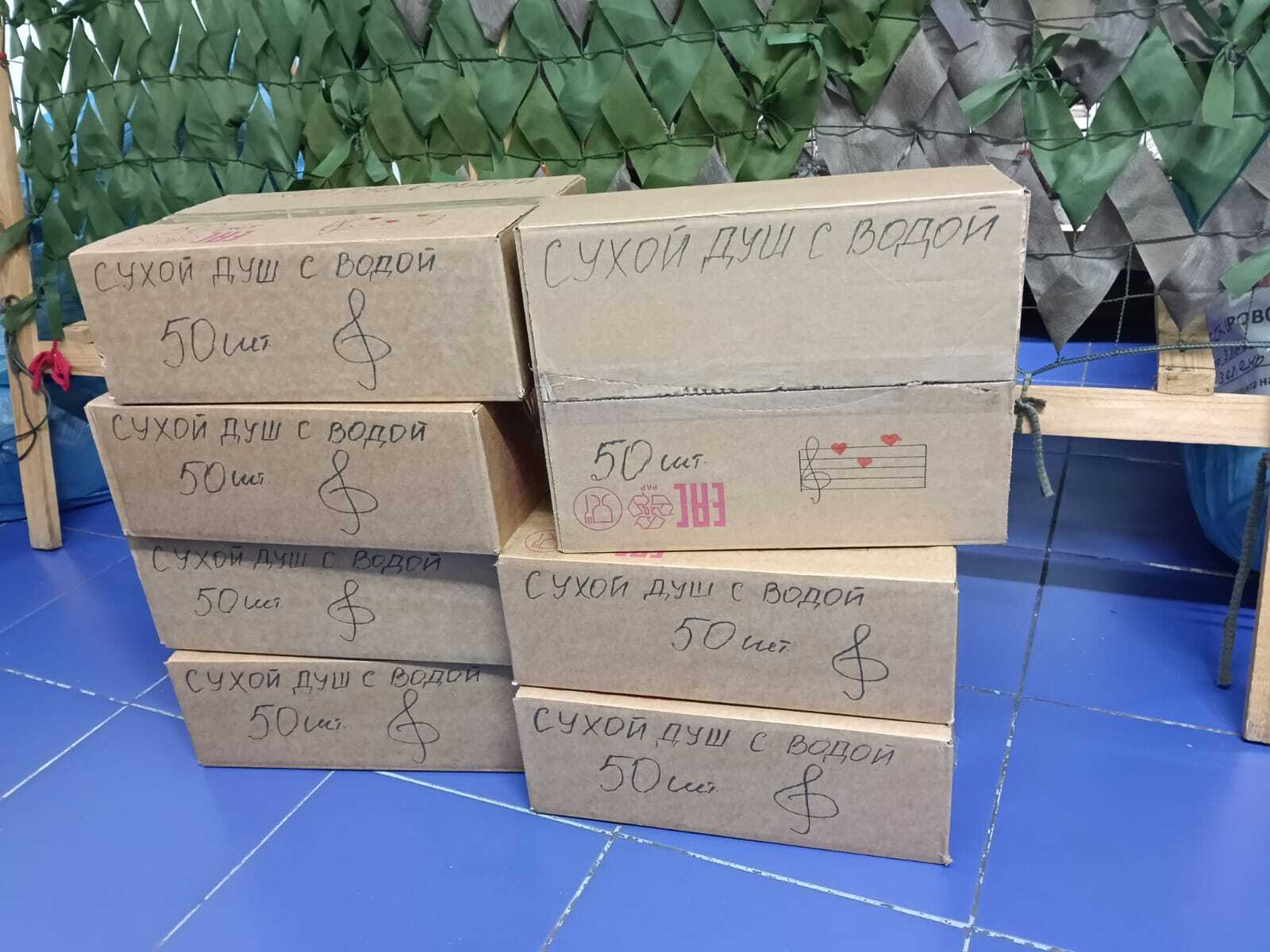 Очень приятно, когда идет обратная связь с волонтерами, доставляющими наши посылки, и военнослужащими, их принимающими. В начале июля, когда была отправлена партия из 800 душей, мы получили видео, на котором нас благодарят за наши «ДУШевные посылки», а их с другими спутать невозможно, ведь на них наш «бренд» — нотный стан с нотками в виде сердечек.