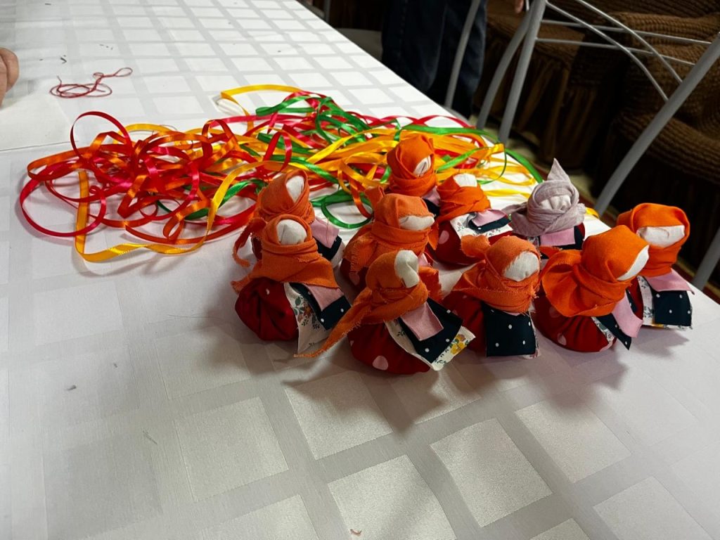 Руководитель студии творчества «Феерия» Анна Николаевна Паюк и художник-постановщик Янина Александровна Близнюк показали технику изготовления куклы-берегини. Каждый из участников очень старался сделать себе оберег, который защитит их от всех бед и болезней.