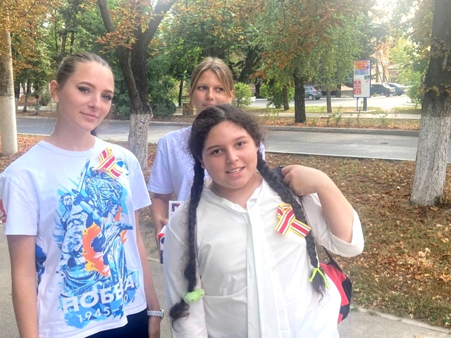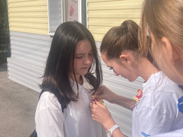 3 сентября Волонтёры Победы вручили муаровые ленточки участникам митинга, жителям города Гуково.