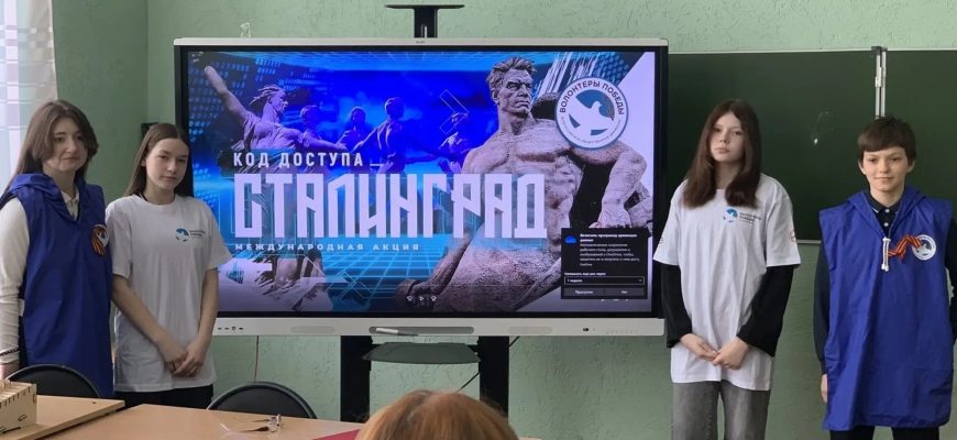 Волонтёры Победы школы N4 организовали участие старшеклассников во Всероссийском интерактивном уроке «Код доступа: Сталинград», посвященному подвигу советских солдат в ходе Сталинградской битвы.