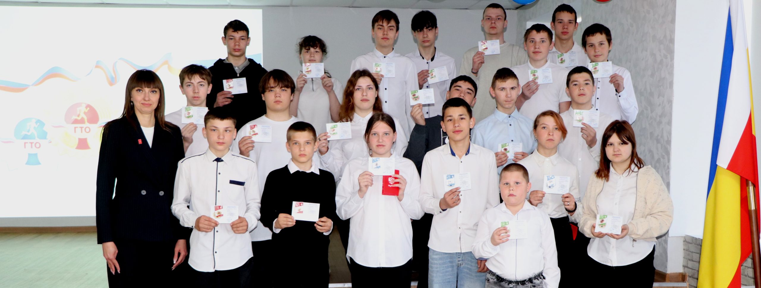 Учащиеся школы, ранее успешно выполнившие нормативы комплекса «Готов к труду и обороне», получили долгожданные знаки отличия.