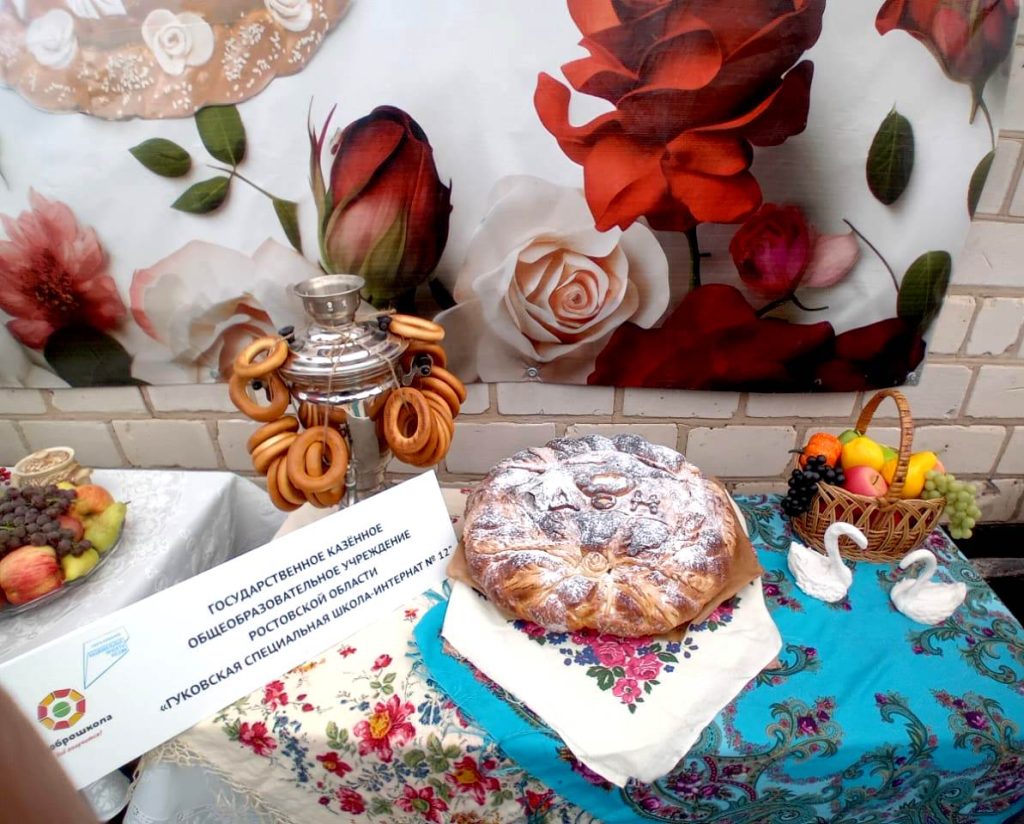 В канун праздника «Покров пресвятой Богородицы» хозяева встречали гостей со всей Ростовской области. Для участников III регионального фестиваля-ярмарки казачьих семейных традиций «Приди, Покров, на Дон с миром и добром» были приготовлены различные площадки с интересными мастер-классами. Наши обучающиеся привезли с собой в подарок русский каравай, который приготовила учитель рисования Н.Г. Скоморохова. Ансамбль народной песни » Куделица» исполнил здравицу «Рады мы Вас видеть» в честь хозяев праздника.