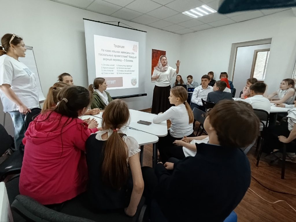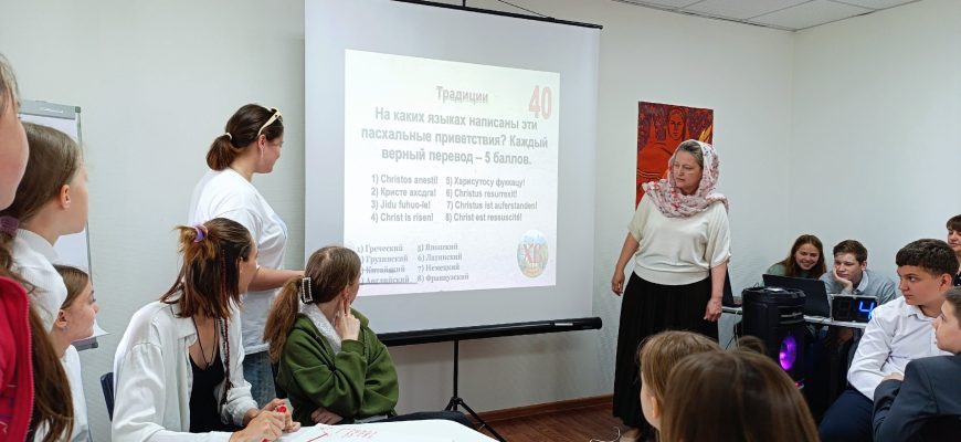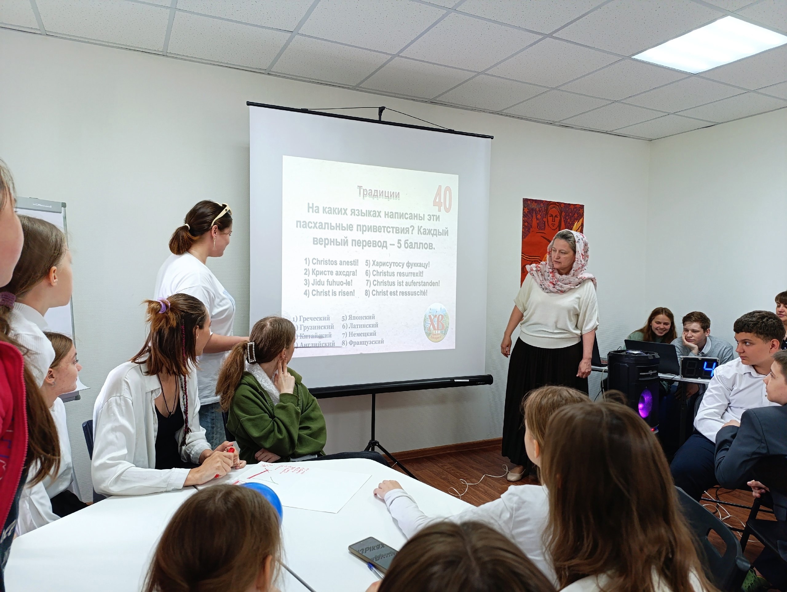 Учебный год в воскресной школе завершился ярким событием. 18 мая по благословению отца-настоятеля Свято-Пантелеимоновского Прихода иерея Леонида Зацепилина ученики вместе с учителями отправились в Добро.центр города Гуково, где состоялся Пасхальный квиз «Солнце правды’.