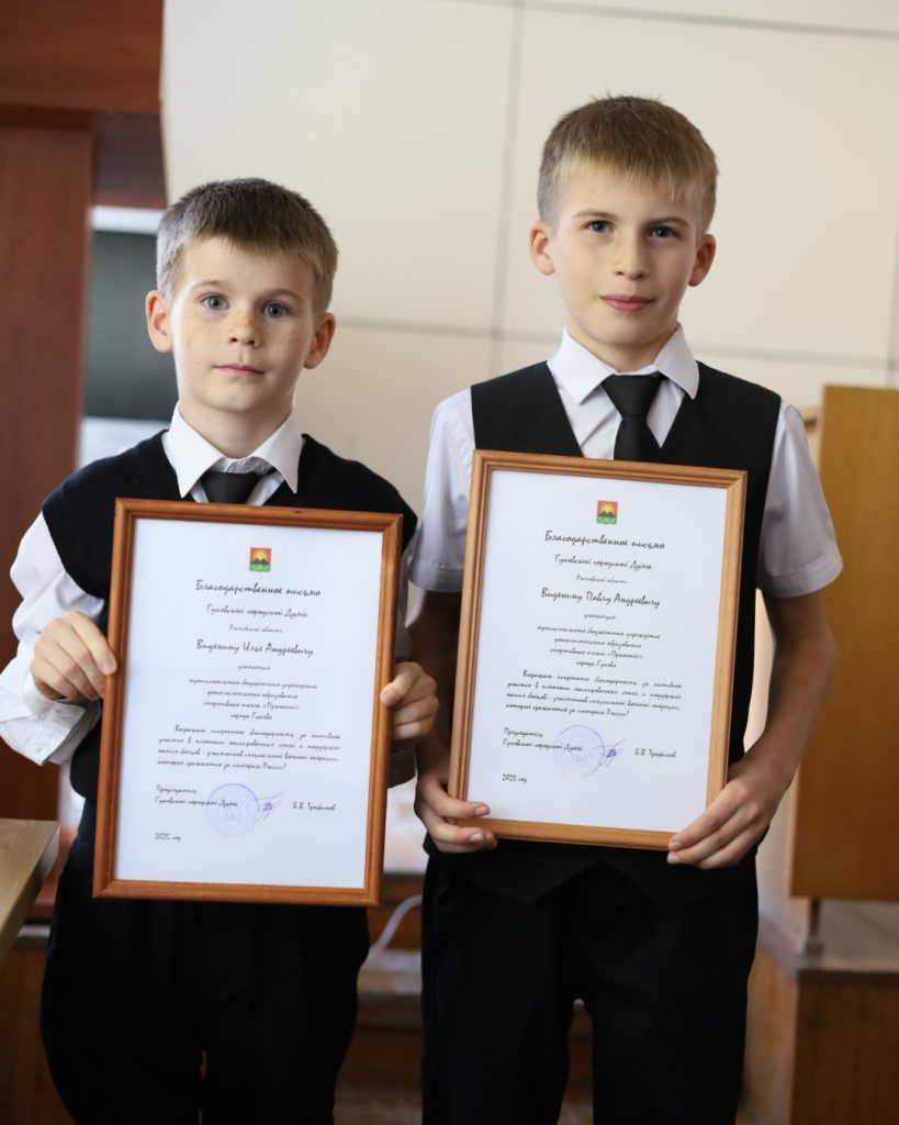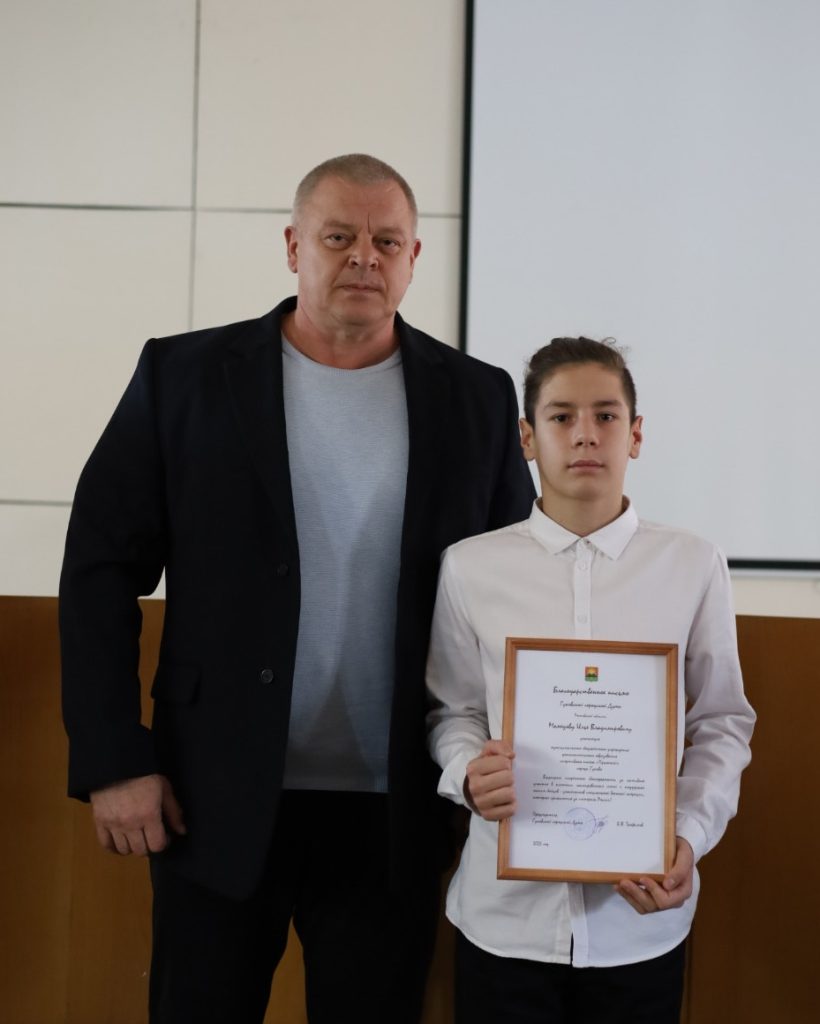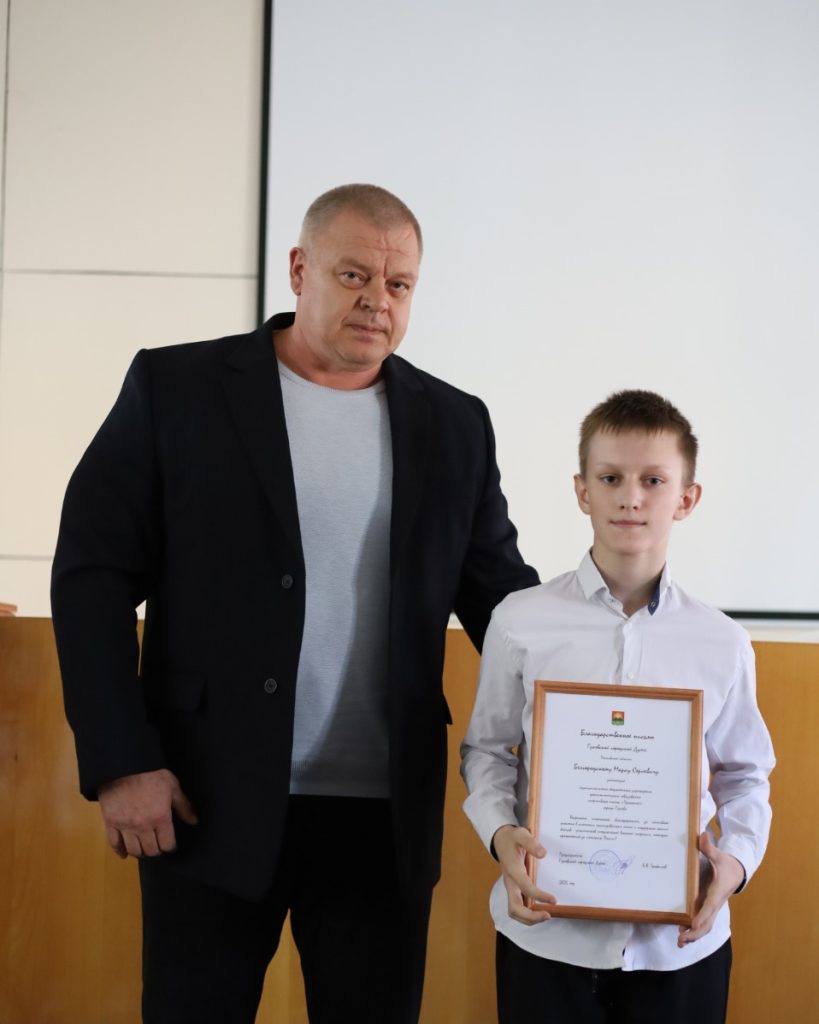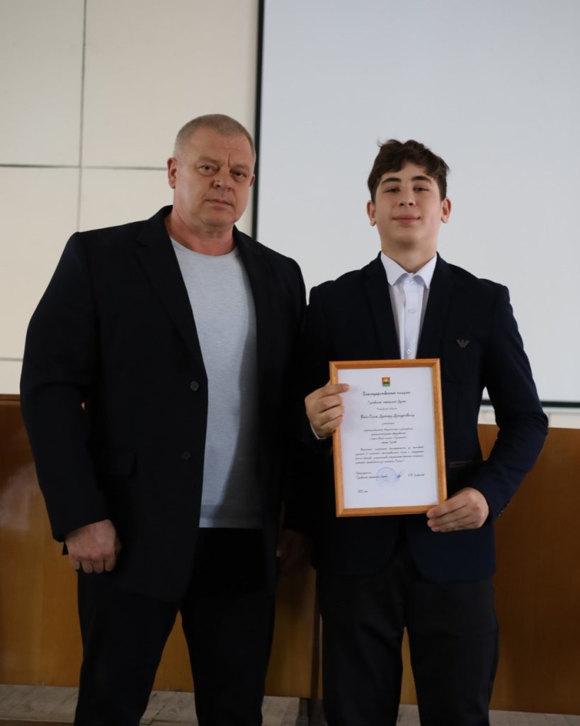 Борис Владимирович вручил Благодарственные письма Елене Николаевне и её воспитанникам: Марку Белгородскому, Дамиру Вейс-Оглы, Маргарите Долгих, Диане Кривенко, Павлу и Илье Видениным, Егору Тудакову, Илье Мамедову и Родиону Чеботареву.