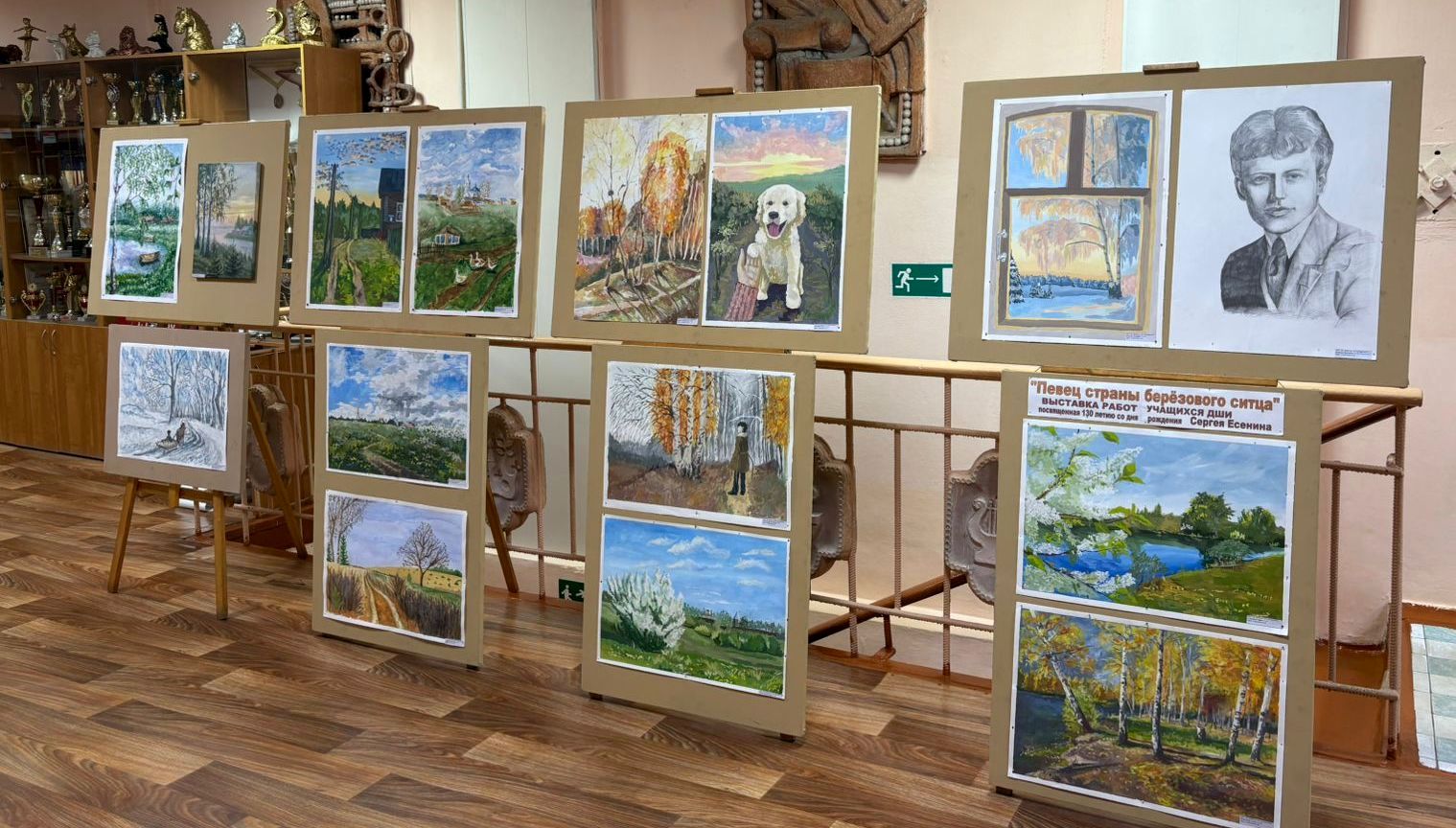 Учащиеся 5 класса отделения изобразительного искусства ДШИ им. И.О. Дунаевского преподавателя Елены Викторовны Горбатенко проиллюстрировали самые лиричные и известные произведения поэта: «Белая береза», «Моя мечта», «Отговорила роща золотая», «Нивы сжаты, рощи голы», «Собаке Качалова», «Пороша», «Поет зима, аукает», «Край ты мой, заброшенный», «Восход солнца» и другие.