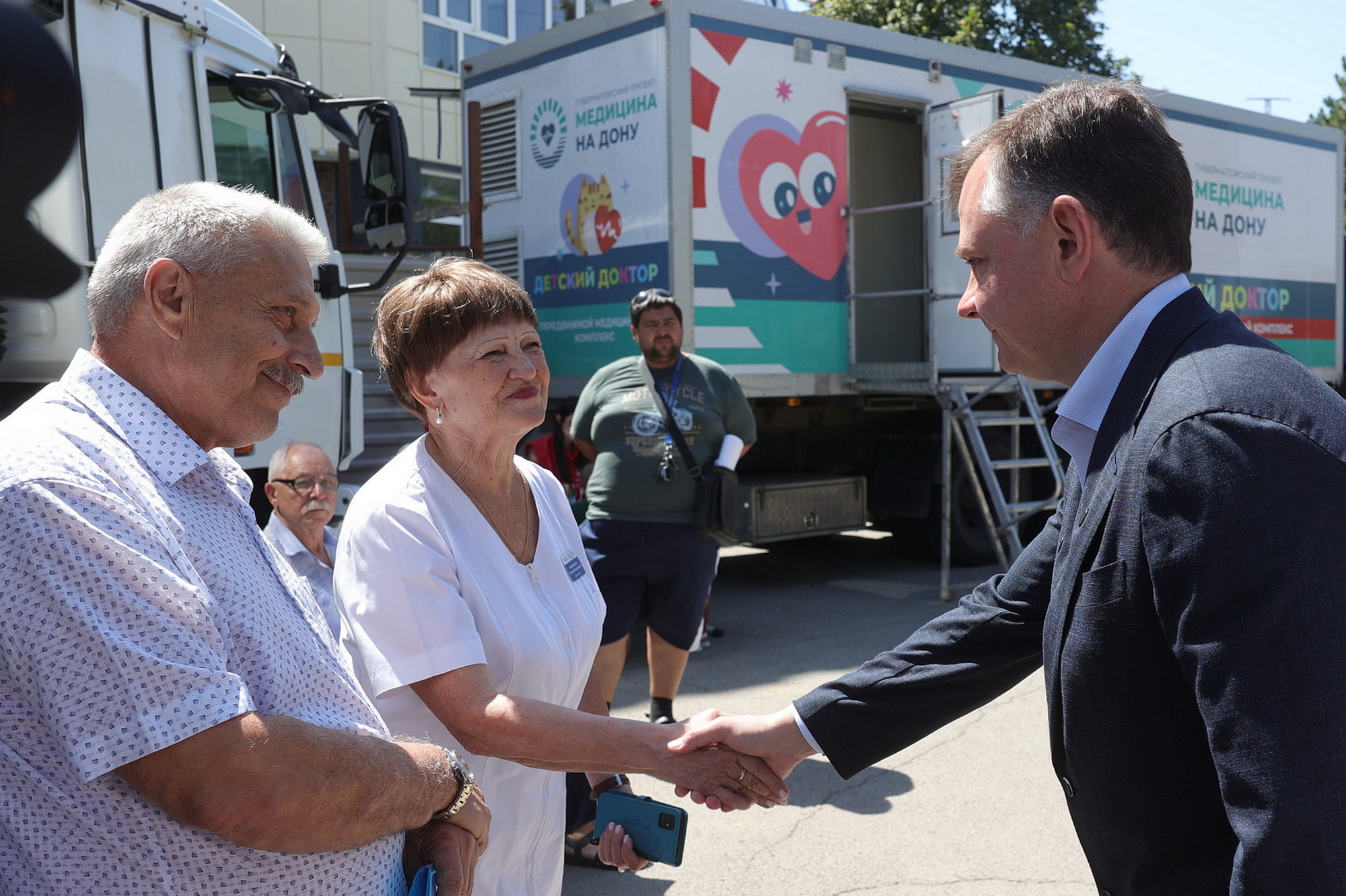 Говоря о системе здравоохранения, глава донского региона сообщил, что именно эта тема звучала во время всех стратегических сессий, на которых жители и эксперты озвучивали свои предложения и инициативы в стратегию. Они замечали, что медицине сегодня самой нужна помощь. Глава региона сообщил, что в оперативном режиме в качестве такой «неотложки» выступила программа «Поезд здоровья» — мобильные медицинские бригады в составе врачей узких специальностей, которые ездят по городам и районам Дона и проводят приемы жителей.